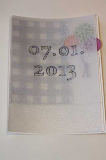 | последняя страничка + форзац. конверт из плотной прозрачной пленки, забразган алкогольными чернилами и проштампован стазоном: